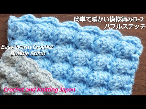 簡単で暖かい模様編みB-2 バブルステッチ【かぎ針編み】 Easy Warm Crochet Bubble Stitch / Crochet and Knitting Japan |